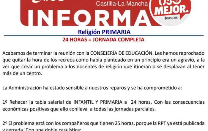 En las elecciones sindicales del profesorado de Religión celebradas en Castilla-La Mancha el 29 de marzo, la Federación de Enseñanza de USO ha obtenido 6 delegados (3 en Albacete, 2 en Toledo y 1 en [...]