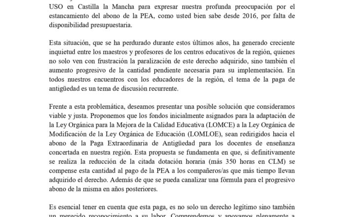 Desde la Federación de Enseñanza de USO queremos seguir liderando con propuestas la posibilidad del abono de la Paga Extraordinaria de Antigüedad. Ya en noviembre de 2020 pusimos sobre la mesa el realizar un [...]